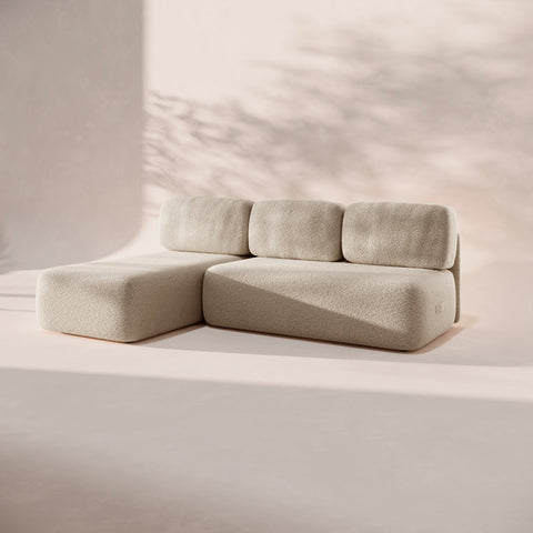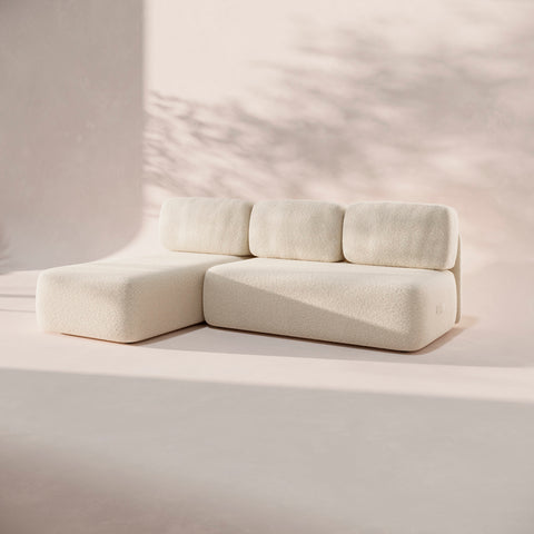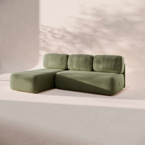 Dos módulos chaise longue que se unen para crear una composición en L amplia, cómoda y muy versátil. Perfecta para estirarte, compartir o simplemente disfrutar de más espacio en tu día a día.